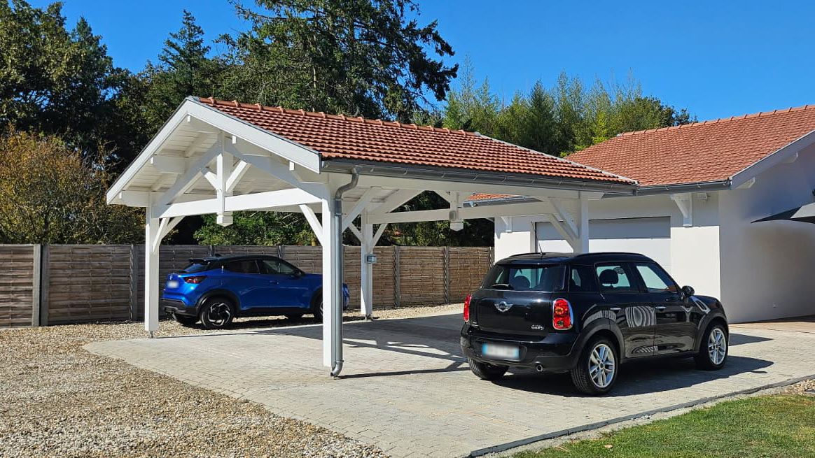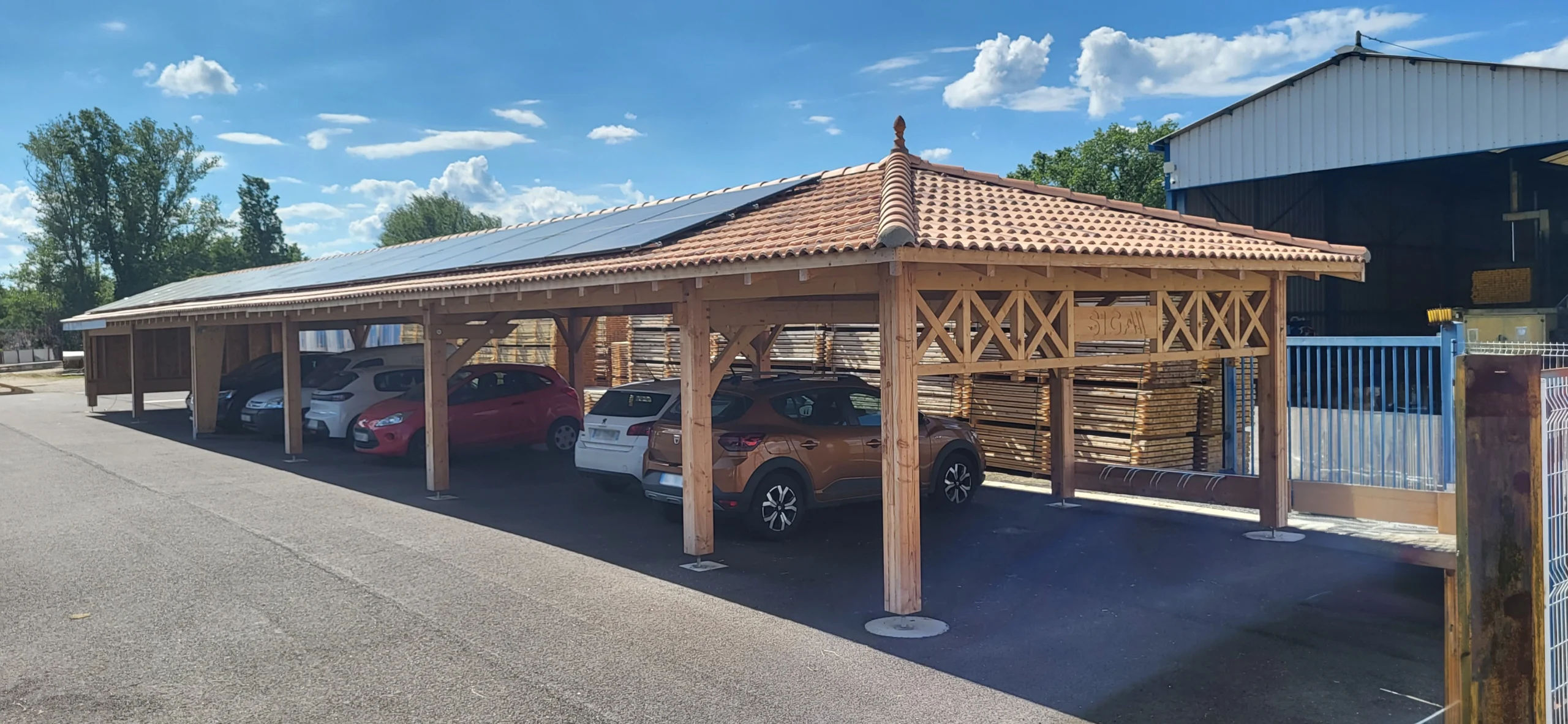 Douglas et Épicéa français, abritant 10 voitures et 6 vélos, et intégrant des panneaux photovoltaïques pour produire de l’électricité. Conçue et réalisée par SIGA