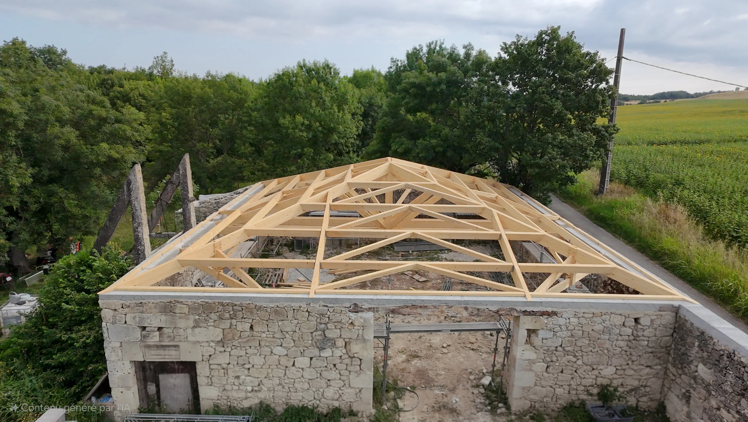 Structure en épicéa et douglas (14 m³ de sablières), conçue et fabriquée 100 % SIGA à Gasques (82)